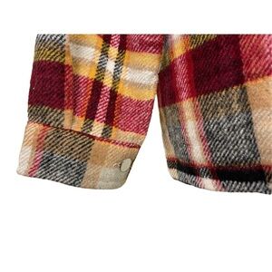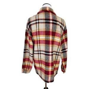 Womens Plaid Button Front Shirt Jacket Shacket Large Tan Black Red EUC