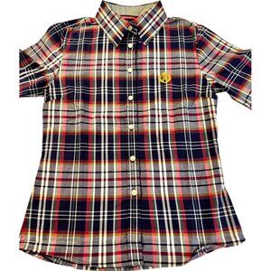 This plaid button-up shirt combines comfort and style, perfect for casual wear. Its boyfriend fit ensures a relaxed look, while the vibrant colors make it eye-catching.