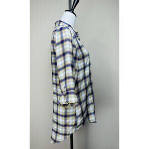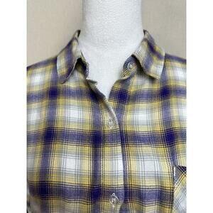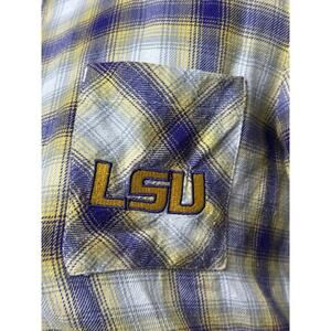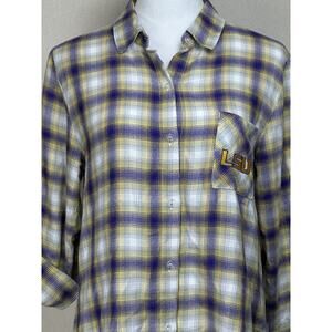 Women’s Plaid Flannel Button-Down LSU Tiger Shirt With Roll-Up Sleeves Sz M