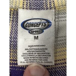 The LSU Tigers Women's Plaid Flannel Button-Down Shirt with Roll-Up Sleeves in size M is a stylish and comfortable piece of fan apparel for women. Officially licensed by Louisiana State University, this shirt features the team's signature colors of white, purple, and gold. Perfect for any sport season, this shirt is a must-have for any Tigers fan looking to show their team pride. The roll-up sleeves add a modern touch to this classic button-down shirt, making it a versatile addition to any fan's wardrobe.