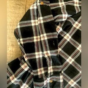 SUPER SOFT and COMFY, Women's Passport Plus, plaid button down shirt with front left pocket. Inner back lining is a sherpa material as noted in photographs and super soft.