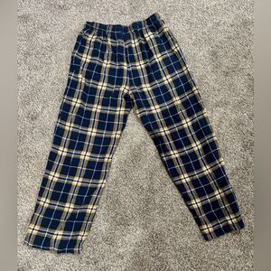 Cozy and stylish plaid pajama pants for kids in navy and gold. Perfect for a comfortable night's sleep.