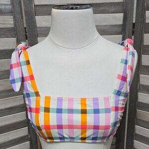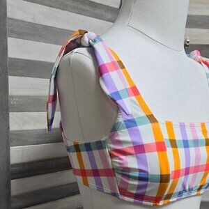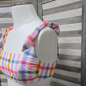 Bring classic charm to your swim looks with the Plaid Shoulder-Tie Bralette Bikini Top from Kona Sol™.