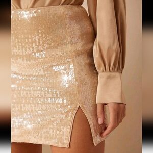 Women's Plain Color Slit Sequin Decor Simple A-Line Skirt, Casual