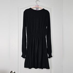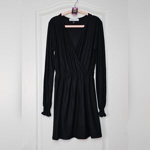 Womens Planet Gold Black Mini Surplice Neckline Elastic Waist Ruffle Sleeve S