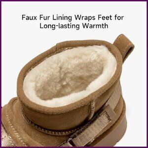 • Fabric: Crafted from 100% cow suede upper with a waterproof finish and a soft, plush faux fur lining.