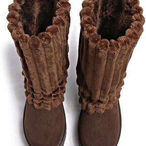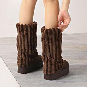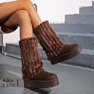 Women's Platform Fur Boots, Fuzzy Fleece Lined Ankle Booties - size 8.5
