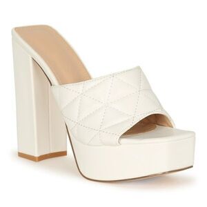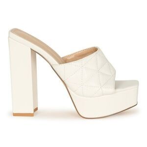 Women's Platform quilted block heels sandals designer inspired white DDK