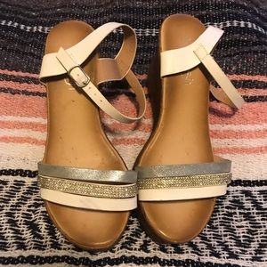 Women’s platforms, pre loved but in good condition. They still have tons of life left. My feet tend to swell now with my pregnancy and they feel very tight up front. Super cute platform regardless.