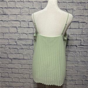 Allover pleated detailing and v-Neckline creates a flattering silhouette