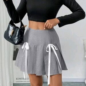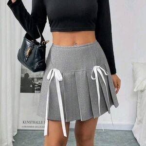 Women's Pleated Colorblock Bow Decor Elegant A-Line Skirt,Autumn