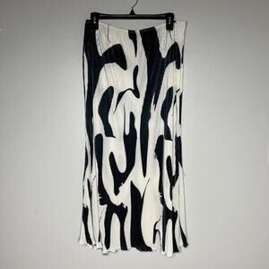 Women's Pleated Elastic Waist Maxi Long Skirt Size XL/12 Ruffle HemHigh Waist