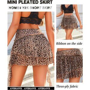 Women's Pleated Mini Skirt Mesh Layered Leopard
