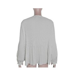 Women’s Pleated Polka Dot Long Sleeve Blouse Office Top Size Medium