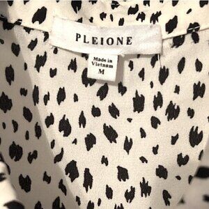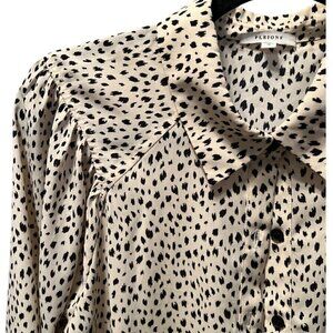 Women's Pleione Patterned Silky Button Down Cream and Black Printed Blouse Sz M