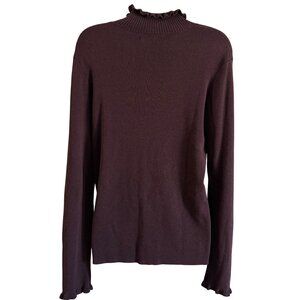 Womens Plum Ruffled Mock Neck Long Sleeve Sweater L Who What Wear