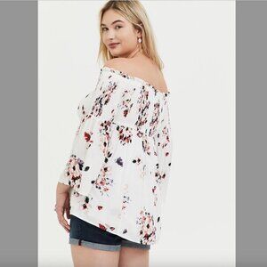 Women's Plus 2 Torrid Modal Lace-Up Smocked Off-Shoulder White Top Floral