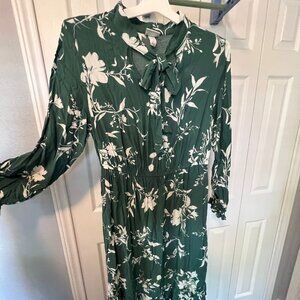 Women's Plus Ava & Viv Green Floral Tie-Neck Maxi Dress Size X