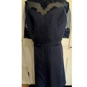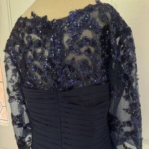 Women's Plus Evening Gown Sequined Lace Dress 20W Navy Blue Ruched Slimming 2XL