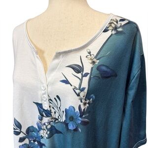Trendy women's plus size top featuring a beautiful floral design in blue and white. Perfect for any occasion. Like new!