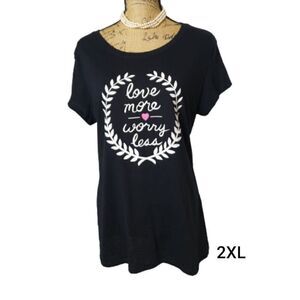 Women's Plus Graphic Tee Love More Worry Less Black T-Shirt 2XL NWOT