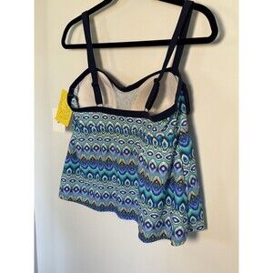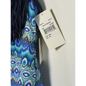 Women's Plus Size 0X 14/16 Costa Del Sol Fringed Swim Tankini Top blue New