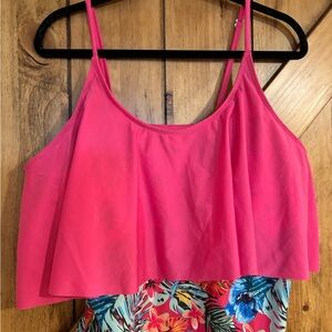 Women’s Plus Size 1 Piece Hot Pink And Floral Swimsuit - Size 3x