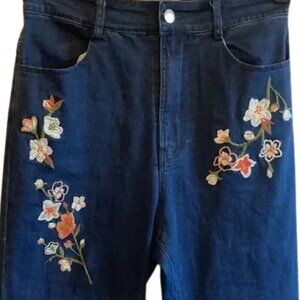 Women’s Plus Size 1XL Dark Wash Embroidered Floral Jeans
