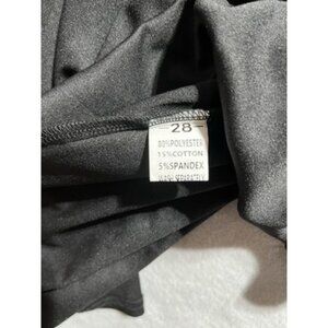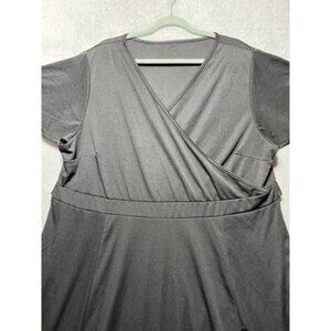 The Women's Plus Size 28 Black Stretchy Flutter-Sleeve Dress Tie Back is a stylish and comfortable knee-length dress designed for plus-sized women. Made from a blend of polyester, spandex, and cotton, this black dress features short flutter sleeves and a tie back detail, making it a versatile and flattering option for various occasions. The solid black color adds a classic touch, while the stretchy material ensures a comfortable and flattering fit for size 28 women.