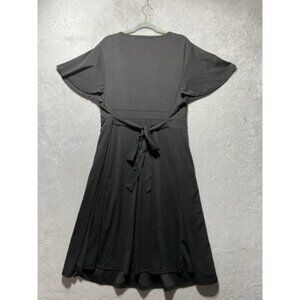 Women's Plus Size 28 Black Stretchy Flutter-Sleeve Dress Tie Back