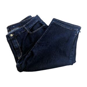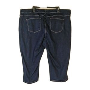 St. John's Bay Capri Bermuda style jeans dark wash denim blue. Plus size 28W fit with a High-Rise waistline.