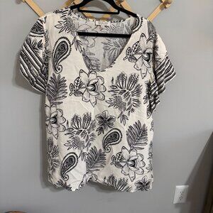 Short ruffle sleeve with V-Neck neckline. Has a lightweight breathable fabric.