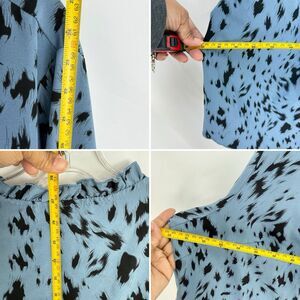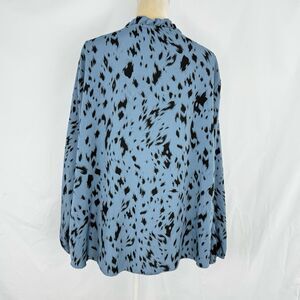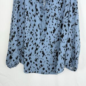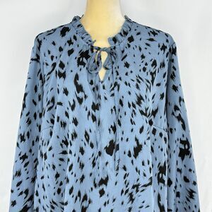 Womens Plus Size 3XL Allover Print Tie Neck Blouse Long Sleeves Dusty Blue