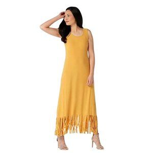 Womens Plus Size 3XL Mustard Yellow Sleeveless Cover Up Dress Fringe Hem Beach