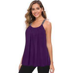 Women's Plus Size Cami Casual Pleated Chiffon Tank Top with Beaded Strap