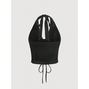 Women’s Plus Size Crop Top Lace Up Front Halter Open Back Casual Sleeveless
