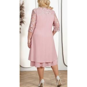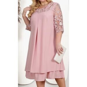 This beautiful women's plus size dress features elegant floral embroidery and delicate lace sleeves. The half sleeves add a touch of sophistication, making it perfect for special occasions or a stylish everyday look. The dress is designed to flatter your figure and provide a comfortable fit.