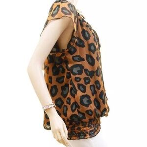 Women’s Plus Size Faux Silk Chiffon Off-Shoulder Lined Animal Peasant Blouse- 3X