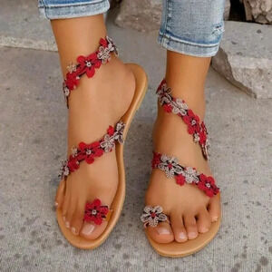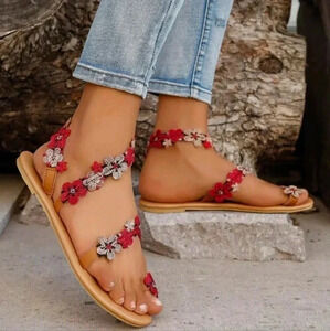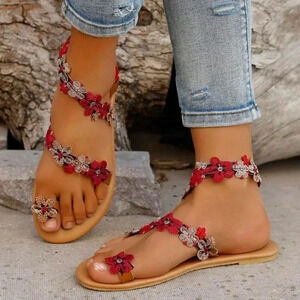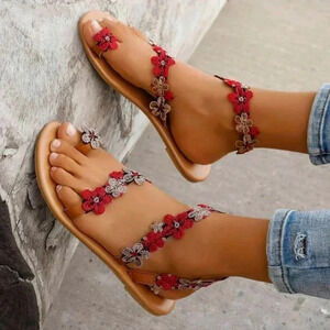 Women's Plus Size Flower Decor Strap Fashion Flat Sandals, Random Color