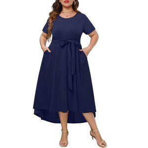 Women's Plus Size High Low Dress Wedding Guest Semi Formal Pockets
