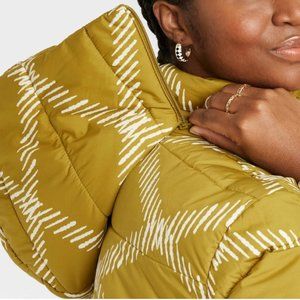 Women's Plus Size Hooded Short Puffer Coat - Ava & Viv Green Diamond 1X NWT