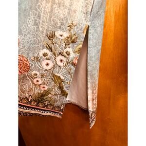 Women's Plus Size Long Sleeve Tunic Blouse Top Green/Blue Floral Top Size 2X
