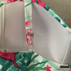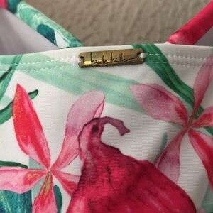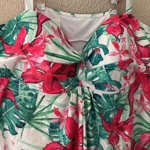 Womens Plus Size NICOLE MILLER PLUS FLYAWAY SWIMDRESS ONE PIECE Tropical 3XWhite