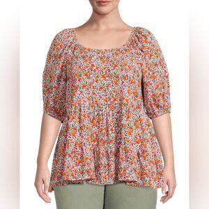 Women's Plus Size Puff Sleeve Square Neck Babydoll fall Top