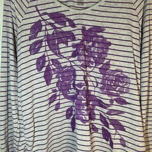 Women's Plus Size Purple and Gray Long Sleeve Floral Print V-Neck Size 1X