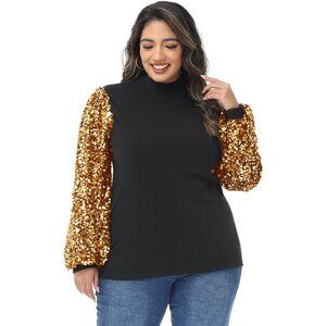 Women's Plus Size Sparkle Sequin Sweatshirt Mock Neck Long Sleeve Glitter Top