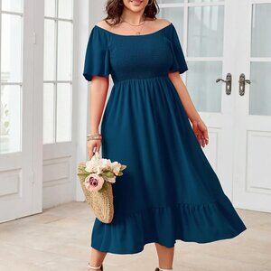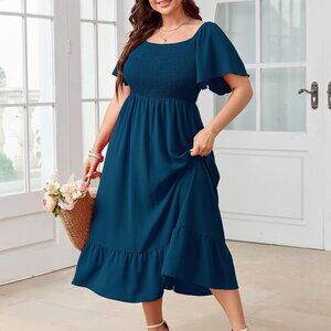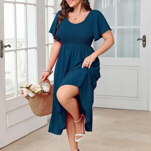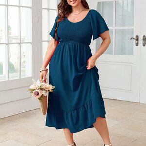 Women's Plus Size Summer Dress Floral Boho Maxi Short Sleeve Ruffle
