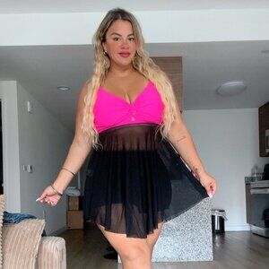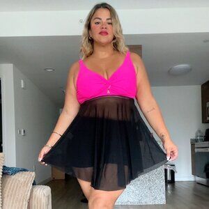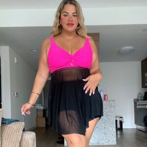 Women's Plus Size Swimsuits Tummy Control Bathing Suits Flowy Mesh Swim Dress