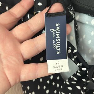 Women’s Plus Size Swimsuits for All Tankini Top, Black/White Polka Dot, Size 22