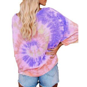 Add a splash of color to your wardrobe with this Women's Plus Size Tie Dye Button-Up Top, available in size 2X. Made from a blend of 67% polyester, 27% rayon, and 7% spandex, this top offers a stretchy and comfortable fit. The vibrant tie-dye pattern in purple, pink, and yellow is perfect for a fun, casual look. Featuring a V-neckline, button-up front, and a trendy tie-front detail, this blouse is both stylish and versatile. The long, loose-fitting sleeves add a relaxed vibe, making it perfect for pairing with jeans or shorts. Easy to care for, simply machine wash to keep it looking fresh and vibrant. Bin W